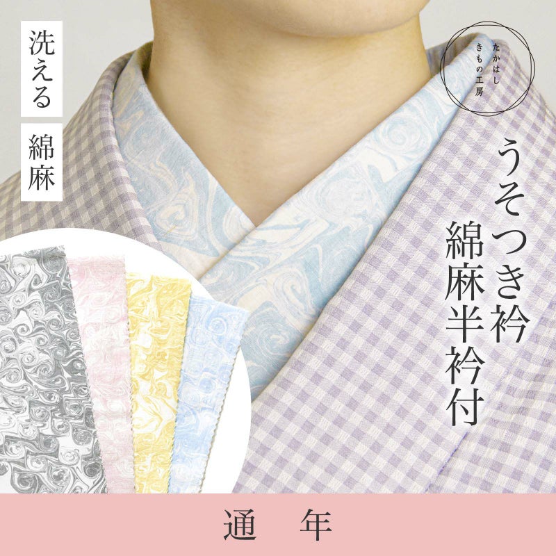 うそつき衿(美容衿)【綿麻半衿付】
