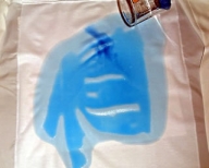 2.次に100mlの色水を下着にかけていきます。 ![]() |