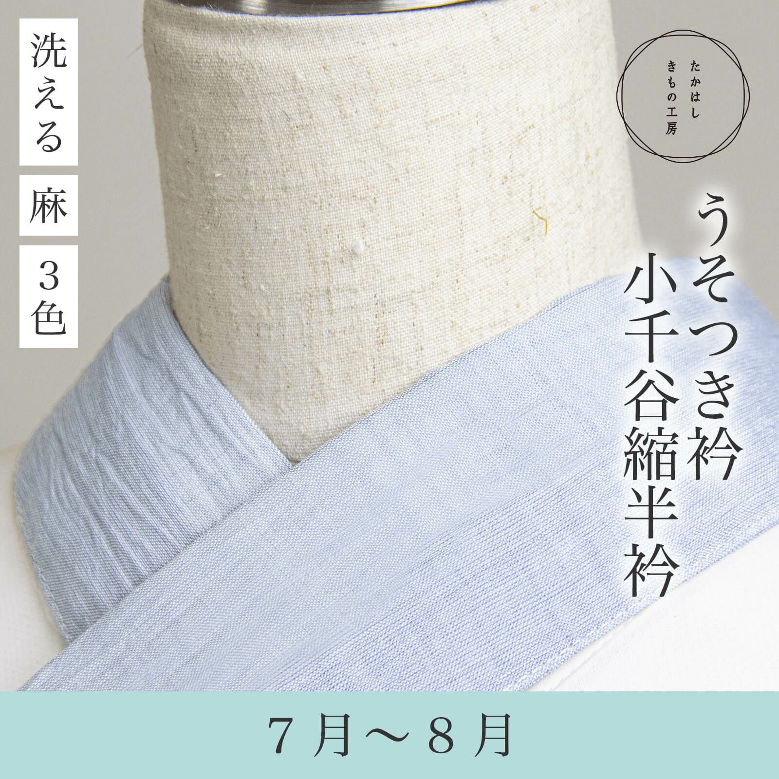 初のうそつき衿、ご近所外出で練習した後、旅先で付けてきました。襦袢なしで衿付けにできるのは最高ですね。小千谷縮の衿で涼しげなのもポイントが高いです。まだ使い慣れていませんが、旅先で一日歩き回って、長距離列車に乗って、それでも崩れませんでした! ただ、襟芯を通す時に真ん中を過ぎた辺りで進まなくなり、反対側から強引に引っ張らなければならないのが難儀します。襟をキッチリつけてくださっているためかなと思っていますが、使うときのストレスになるのでおすすめ度-1です。